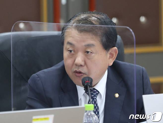 (용인=뉴스1) 김영운 기자 = 김병주 더불어민주당 의원이 14일 오전 경기 용인시 지상작전사령부에서 열린 국회 국방위원회의 육군지상작전사령부에 대한 국정감사에서 질의를 하고 있다. 2022.10.14/뉴스1