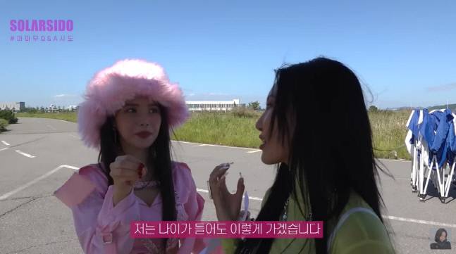 이어 솔라는 “나이가 들어도?”라고 다시 물었고 화사는 “나이가 들어도 이렇게 가겠다”며 “무덤까지 가져가서 비석에 붙이겠다”고 너스레를 떨었다.
