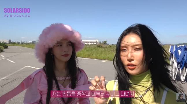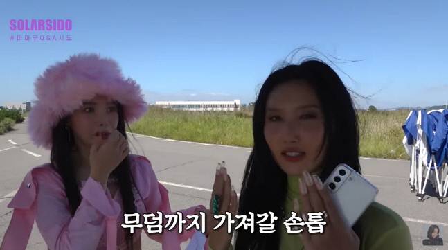 영상 속에서 솔라는 마마무 멤버들을 한 명씩 만나며 Q&A 시간을 가졌다. 화사를 만난 솔라는 “손톱을 짧게 할 생각 없냐”고 물었다. 평소 긴 소톱을 고집하는 화사는 단호하게 “없다”고 대답했다.