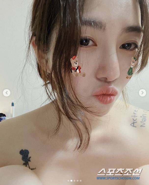 'AOA 출신' 권민아, 설마 '올 누드 셀카'? 상반신 이곳저곳 타투를 자랑하고 싶었나?