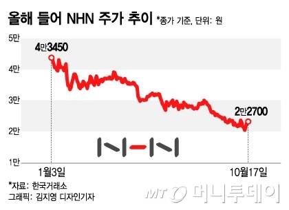 17일 코스피 시장에서 NHN의 주가는 전 거래일 대비 1200원(5.58%) 오른 2만2700원으로 장을 마쳤다.