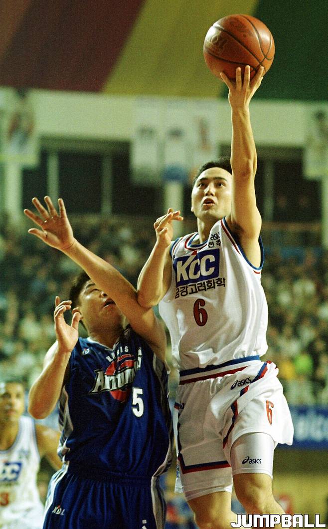 그렇죠. 사실 농구에서 신장을 강조하는 부분 중 상당수는 수비때문이잖아요. 공격이야 스킬만 뛰어나면 어떻게든 풀어나가지만 수비는 정말 단신 선수에게 쥐약이거든요. 미스매치라는 말이 괜히 나오는게 아니거든요. 하지만 저는 반대로 생각했어요. 다들 신장 때문에 제 키로는 힘들 것이다고 판단했으나 역으로 바로 그 부분에서부터 풀어나가야겠다고. 마침 LG 시절 이충희 감독님이 수비를 매우 중시하는 분이셨어요. 본인은 현역 때 최고의 슈터였지만 지도자로서는 다양한 수비전술을 통해 경기를 풀어나가는 것을 선호하셨죠. 악착같은 것이야 제 입장에서 당연한 것이었고요. 감독님과 함께 하면서 수비적인 부분에서 많이 성장한 듯 싶어요.