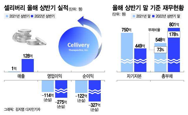 올해 들어 적자 규모가 커지며 재무구조가 악화하고 있는 점도 극복해야 할 과제다. 셀리버리의 올해 연결기준 상반기 매출액은 128억원으로 전년동기대비 대폭 증가했지만 영업손실 규모 역시 275억원으로 2배 이상 늘었다. 올해 상반기 순손실은 327억원이다. 이에 따라 올해 상반기 말 기준 부채비율은 178%로 지난해 말 대비 2배 이상 상승했다.