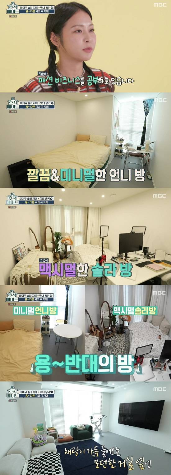 이어 솔라의 집이 소개됐고, 화이트톤의 깔끔한 집이 시선을 사로잡았다. 특히 미니멀한 언니방, 맥시멀 한 솔라의 방의 극과 극 인테리어가 돋보였다.