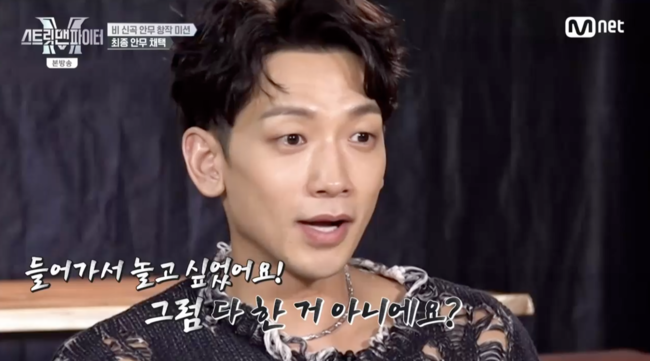 완성된 퍼포먼스를 본 비는 “서있는 거부터 자신감이 있잖아. 뽑을 거면 뽑고, 아니면 마세요”, “표정이 왜 이렇게 좋지?”, “진짜 놀러온 것 같아. 신나”, “팔각정 이 부분 살렸죠. 이게 히트야”, “진짜 놀러온 것 같아. 같이 놀고 싶어”, “살린 가사가 하나도 없어. 근데 멋있어” 등 칭찬을 이어갔다.