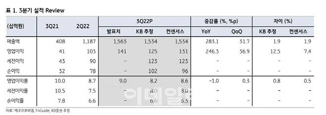 이창민 KB증권 연구원은 이날 보고서에서 “에코프로비엠의 2022년 3분기 실적은 매출액 1조5632억원, 영업이익 1409억원을 기록해 컨센서스(영업이익 1312억원)를 상회했다”며 “양대 고객사향 양극재 수요가 견조한 가운데 주요 원자재인 니켈·리튬 등 가격 상승분의 판가 반영으로 평균판매가격(ASP)가 전 분기 대비 개선됐다”고 설명했다.