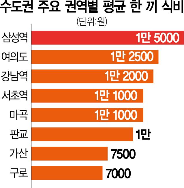 직장인 점심값 보니..삼성동 1.5만원 '톱' 구로구 7000원 최저