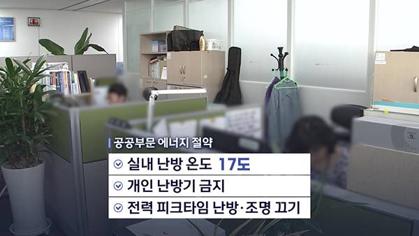 올겨울 산업부가 시행하는 '공공기관 에너지 다이어트 10'이 시작됐습니다. 공공기관의 난방온도를 17도로 제한하는 게 핵심입니다. 그전엔 18도, 때에 따라선 20도까지도 가능했는데 올해는 예외 없이 딱 잘라 17도라고 합니다.