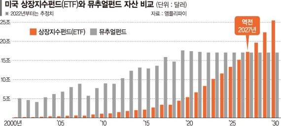 "'가파른 성장세' 美 ETF.. 5년후 뮤추얼펀드 추월할 것"