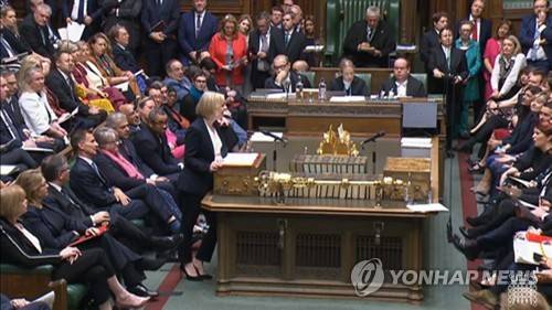 epa10252153 A grab from a handout video made available by the UK Parliamentary Recording Unit shows British Prime Minister Liz Truss (C), answer during the Prime Minister's Question (PMQs) at the House of Commons in London, Britain, 19 October 2022. EPA/UK PARLIAMENTARY RECORDING UNIT HANDOUT -- MANDATORY CREDIT: UK PARLIAMENTARY RECORDING UNIT -- HANDOUT EDITORIAL USE ONLY/NO SALES