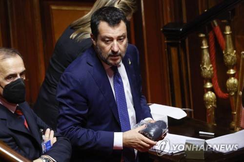 epa10252698 League leader Matteo Salvini attends the Italian Senate session for the election of vice-presidents of the Senate, in Rome, Italy, 19 October 2022. EPA/FABIO FRUSTACI