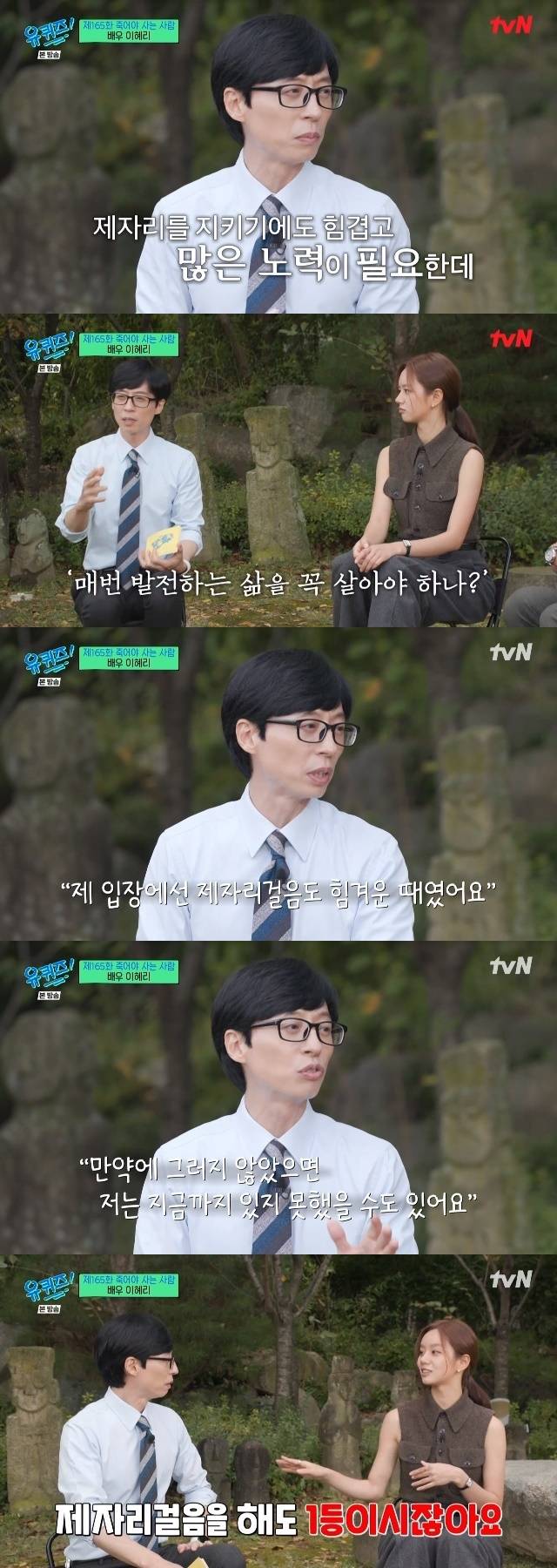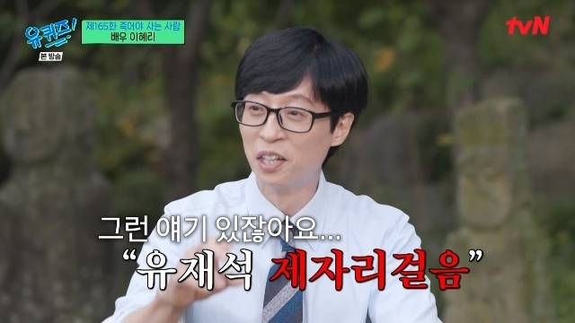 10월 19일 방송된 tvN '유 퀴즈 온 더 블럭'(이하 '유퀴즈') 165회에서는 유재석이 게스트 이혜리와 대화 중 '제자리걸음'에 대한 자신의 생각을 내비쳤다.