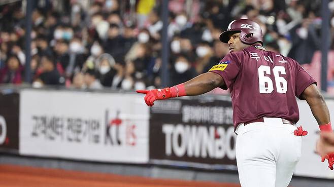 승리의 일등 공신은 결승 3점 홈런 포함 4타점, 불방망이를 휘두른 야시엘 푸이그였습니다. 푸이그는 1회 투아웃 1, 2루 기회에서 KT 선발 고영표의 체인지업을 정확히 받아쳐 왼쪽 담장을 까마득하게 넘어가는 비거리 125m짜리 초대형 선제 3점 홈런을 터뜨렸습니다. 그리고 4-0으로 앞선 3회 원아웃 3루 기회에서는 바뀐 투수 데스파이네의 체인지업을 공략해 깨끗한 1타점 적시타를 날렸습니다. 포스트시즌 첫 홈런이 결승포가 된 푸이그는 경기 MVP를 받고 환하게 웃었습니다.