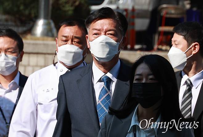 | ▲ 김홍희 전 해양경찰청장이 21일 오후 서울중앙지법에서 ‘서해 공무원 피격 사건’ 관련 직권남용, 허위 공문서 작성 혐의로 영장실질심사를 받기 위해 도착하고 있다. |