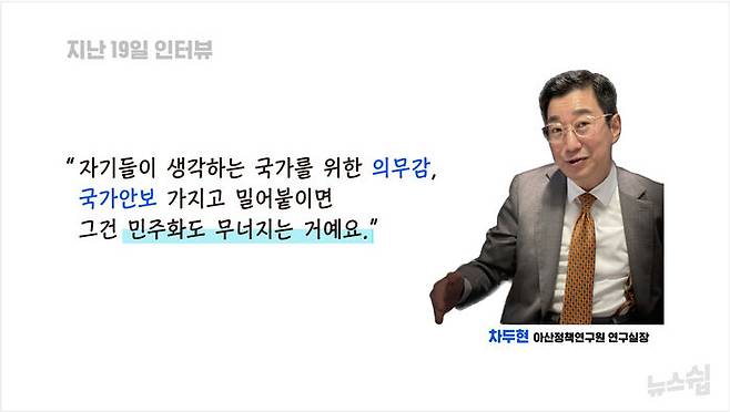 '한국을 완전히 망하게 하지는 않더라도, 본때를 보일 것이라는 얘기냐'고 묻자, 차두현 연구실장은 "그게 현실이라고 본다"고 답했다.