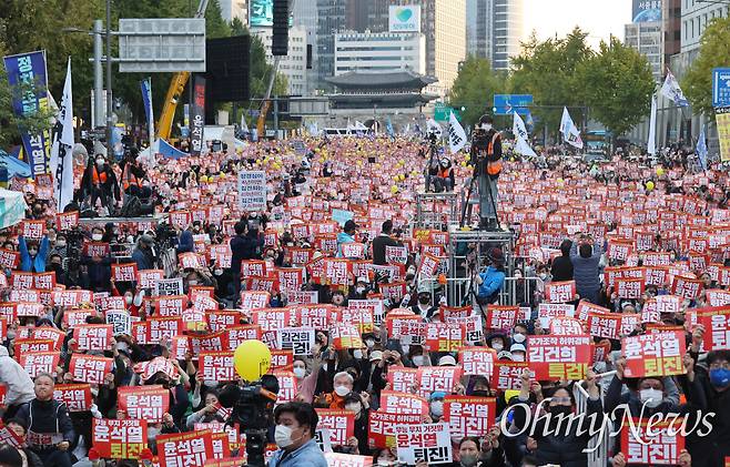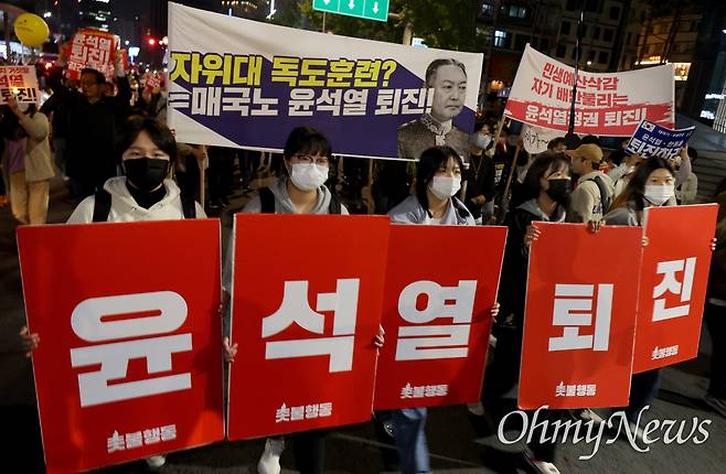 | ▲ 전국에서 모인 수많은 시민들이 22일 오후 서울 중구 서울시청 인근에서 열린 11차 전국집중 촛불대행진에 참석해 윤석열 대통령 퇴진과 김건희 여사 특검 수사 등을 촉구하며 용산 대통령실로 행진을 벌이고 있다. |