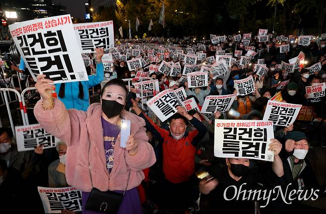 서울 시청역에서 숭례문까지 이어진 세종대로 5개 차선을 촛불이 가득 메웠다. 대구, 강원, 제주 등 전국 24개 지역에서 상경한 시민들은 "헌정질서 파괴하는 윤석열은 퇴진하라" "주가조작 경력사기 김건희를 특검하라"고 외쳤다.