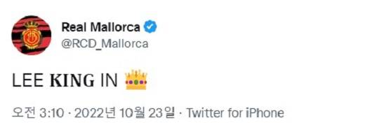 마요르카는 23일 오전 1시 30분(한국시간) 스페인 발렌시아의 메스타야에서 열리는 2022-23시즌 스페인 라리가 11라운드에서 발렌시아와 맞붙었다. 마요르카는 2-1 역전승을 거뒀다. 이로써 마요르카는 3승 3무 5패(승점 12점)를 기록하며 12위로 올라섰다.