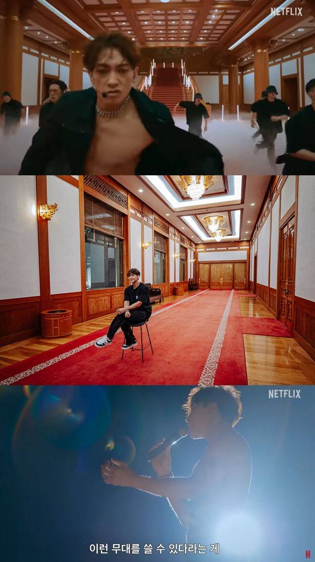 #최초 #도저히 섭외할 수 없는 장소 #화려한 특수효과. 처음으로 청와대 공연을 성사 시킨 가수 겸 배우 비의 꿈은 넷플릭스를 통해 이뤄졌다. 제 손으로 쓴 '깡'의 가사처럼 청와대의 화려한 조명이 감싼 비는 공연 내내 레인 스웩을 뽐냈다.