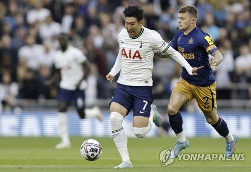 epa10261114 Heung-Min Son (L) of Tottenham in action against Kieran Trippier (R) of Newcastle during the English Premier League soccer match between Tottenham Hotspur and Newcastle United in London, Britain, 23 October 2022. EPA/TOLGA AKMEN EDITORIAL USE ONLY. No use with unauthorized audio, video, data, fixture lists, club/league logos or 'live' services. Online in-match use limited to 120 images, no video emulation. No use in betting, games or single club/league/player publications
