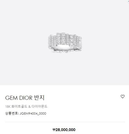 김연아는 자신이 앰배서더로 활동 중인 디올의 다이아몬드 반지를 웨딩밴드로 택했다. 18K 화이트골드에 다이아몬드로 장식된 이 반지는 다양한 컷으로 이루어진 비대칭한 스타일로 시선을 사로잡는다. 가격은 2,800만 원이다.
