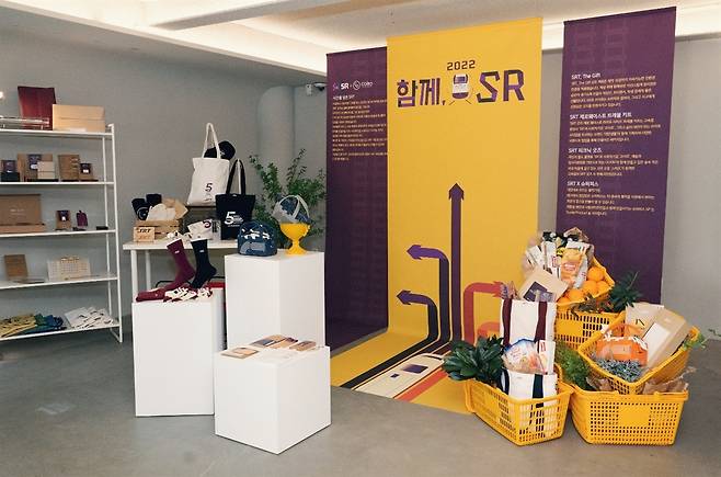 | ▲ SR에서 강동솔루션앵커와 함께 진행한 굿즈 제품들을 전시하고 있다. |