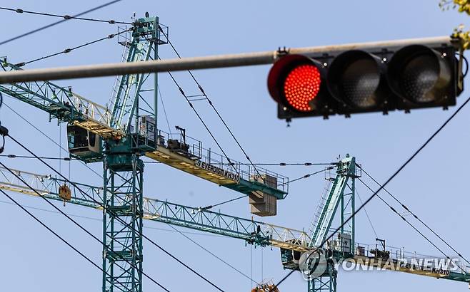 사진은 24일 오후 서울 강동구 둔촌주공아파트 재건축 현장의 모습. 이 재건축 단지는 조합 집행부와 시공사업단이 공사비 증액 문제를 놓고 갈등을 빚어 약 6개월 간 공사가 중단된 뒤, 지난 17일 공사를 재개했지만, 프로젝트파이낸싱(PF)이 차환 발행에 실패하면서 시공사업단이 자체 자금으로 보증한 사업비 7천억 원을 상환하기로 하는 등 어려움을 겪고 있다. 2022.10.24