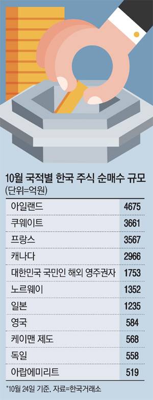 이들 오일머니는 올 하반기 들어 증시가 폭락한 틈을 타 매수 규모를 늘리며 자본시장에 미치는 영향력을 확대하고 있다. 쿠웨이트 투자자들은 이달 들어 3661억원 규모의 한국 주식을 사들였다. 세계 최대 국부펀드 노르웨이 중앙은행 투자관리청(NBIM)을 포함한 노르웨이 투자자들도 1352억원 규모 주식을 매수했고, UAE 투자자들은 519억원어치 주식을 사들였다.
