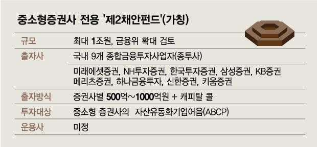 금융당국이 국내 대형 증권사 9개사에 1조원 규모의 중소형 증권사 자산유동화기업어음(ABCP) 매입 전용 펀드를 조성해 달라고 요청한 것으로 확인됐다. 20조원 규모의 채권시장 안정펀드(채안펀드)와 별도 조치로 제2의 채안펀드 조성 주문이다.