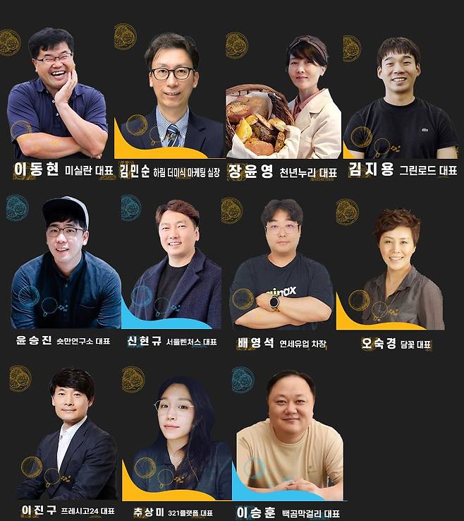 건강 세션에서는 전주비빔빵으로 유명한 ‘천년누리’ 장윤영 대표와 작두콩 커피 제조 스타트업 ‘그린로드’ 김지용 대표가 강연한다.