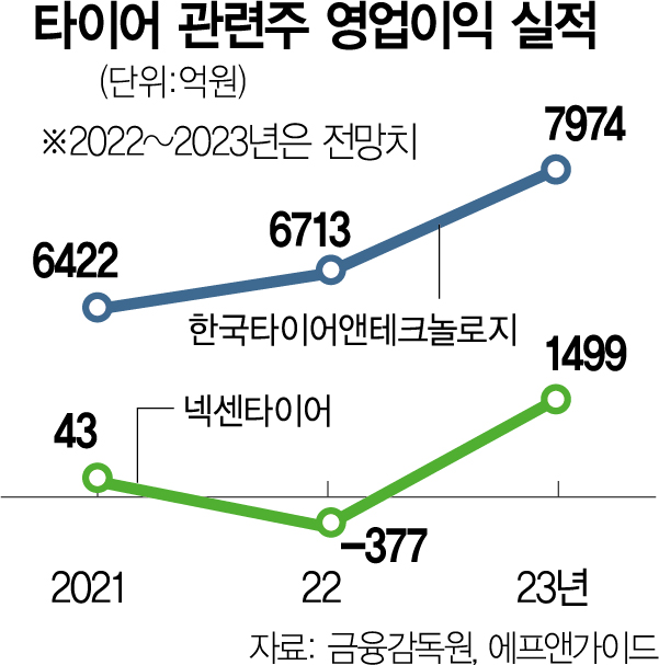 증권가는 타이어 관련주들의 실적이 견조한 성장세를 보일 것으로 전망된다는 점을 긍정적으로 봤다. 한국타이어앤테크놀로지의 지난해 영업이익은 6421억 원이었는데 올해 증권가의 전망치는 6713억 원이다. 특히 3분기 실적이 시장 전망치를 7~8% 웃돌 것으로 예상되면서 전체 영업이익 규모는 더욱 커질 가능성도 있다.