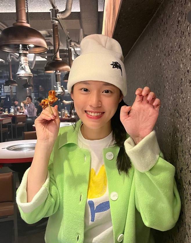 또 다른 사진에서는 설현의 사랑스러움이 담겼다. 닭밝을 먹으며 닭발을 흉내 내는 모습이 마냥 해맑고 싱그럽다. 화장기 없는 얼굴에 비니를 쓰고 있어 앳된 얼굴에 장난스러움까지 내비쳤다.