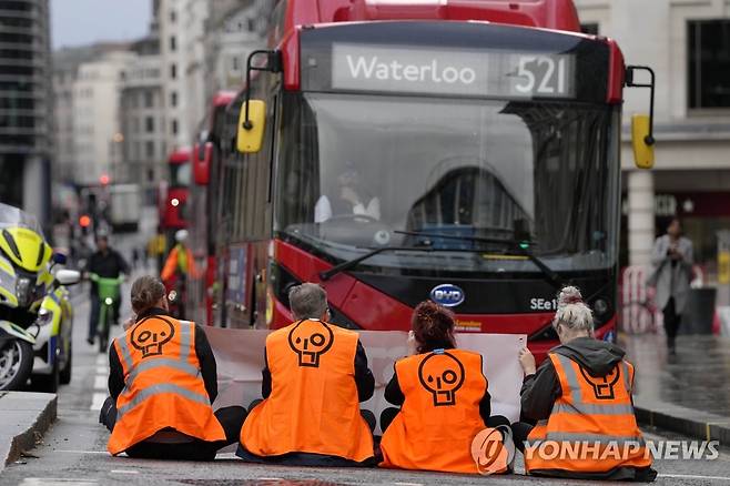 런던 거리 점거한 환경단체 '저스트 스탑 오일'