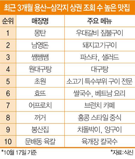 # 10월 19일 오후 11시 30분 찾은 지하철 4호선 신용산역 1번 출구. 30분 전까지만 해도 한산했던 골목이 순식간에 인산인해로 변한다. 아모레퍼시픽 본사에서부터 지하철 4·6호선 삼각지역 쪽으로 이어지는 골목길을 일컫는 이른바 ‘용리단길’에는 점심 식사를 해결하기 위한 직장인이 쏟아져 나온다. ‘쌤쌤쌤’ ‘테디뵈르하우스’ ‘꺼거’ 같은 이름난 맛집 앞에는 오픈 시간보다 훨씬 이른 11시부터 일찌감치 대기 손님이 길게 줄을 서 있는 모습이다. 이국적인 외관과 인테리어를 자랑하는 여러 음식점 건물 앞에서는 포즈를 취하고 있는 2030세대를 어렵지 않게 찾아볼 수 있다. 스마트폰 카메라 셔터 터지는 소리가 쉴 새 없이 들린다. 점심시간이 지난 오후 2시에도 웨이팅은 끊이지 않는다. 한 매장 앞에서는 “현재 웨이팅 고객이 40팀”이라는 직원 말을 듣고 발길을 돌리는 손님도 다수다. 용리단길 인근 공인중개사사무소 대표 김주영 씨(가명)는 “같은 용산구기는 하지만 이태원보다도 용리단길이 훨씬 핫하다. 용산에서 초·중·고를 나와 40년 이상 살고 있는데, 평일이고 주말이고 사람이 이렇게 많은 건 요즘이 처음이다. 최근 용리단길 한 음식점이 매물로 나왔는데, 판매가로 190억원을 불렀을 정도로 장사가 잘된다”며 분위기를 들려줬다.