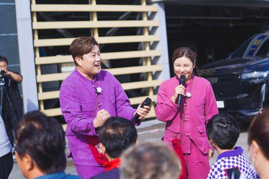 TV조선 '복덩이들고(GO)' 제작진은 28일 송가인과 김호중의 첫 역조공 프로젝트 현장을 담은 스틸 컷들을 선보였다.