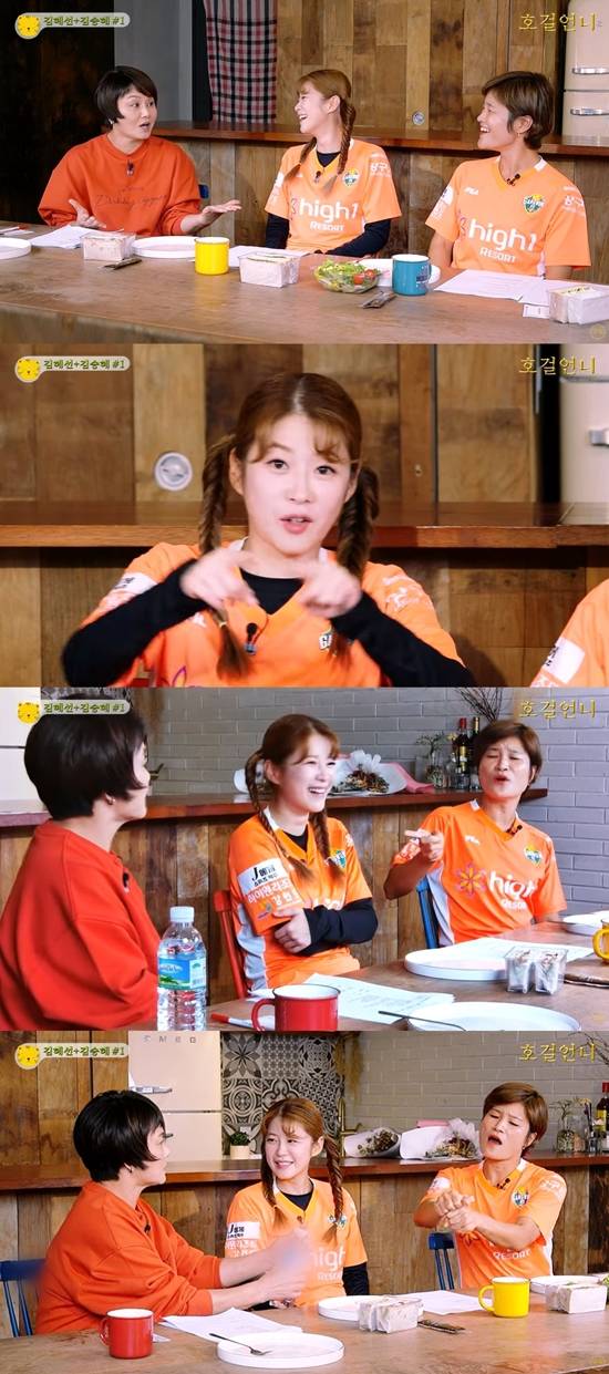 이에 이경실은 "그래서 나도 좀 안 생긴 애들이랑 처음에 못 친해지겠더라. 그렇게 밀어내더라"라며 웃었다. 그러면서 이경실은 김승혜에게 "네가 예쁜 척한 건 아니지 않냐. 네가 만약 예쁜 척했으면 가까워지지 않았다. 예쁜 척하지 않고 털털하게 지냈으니까 김혜선과 친해지고 코너도 같이 한 것"이라고 이야기했다.