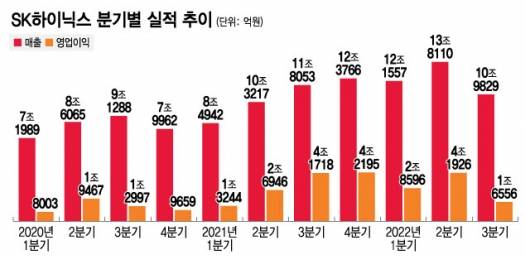 SK하이닉스는 3분기 실적으로 매출 10조9800억원(-20.5%), 영업이익 1조6600억원(-60.5%)을 기록하며 '어닝 쇼크'를 보였다.