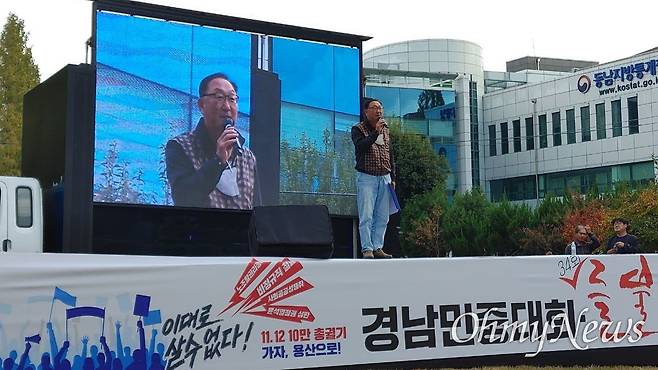 이병하 경남진보연합 대표는 대회사를 통해 "곳곳에서 이대로는 못살겠다는 아우성이 넘쳐나고 있다"며 "물가는 천정부지로 치솟고 주식은 폭락하고 이자부담은 감당하기 힘들게 오르고 있다. 쌀값은 폭락하고 노동자는 산업재해로 죽어가고 청년은 희망조차 잃어버렸다"고 말했다.