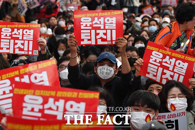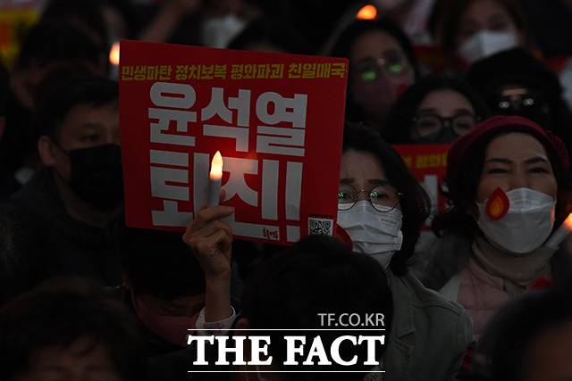 "윤석열 퇴진!" 촛불 들고 거리로 나온 시민들 [TF사진관]