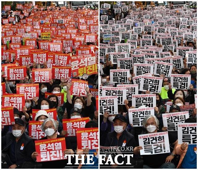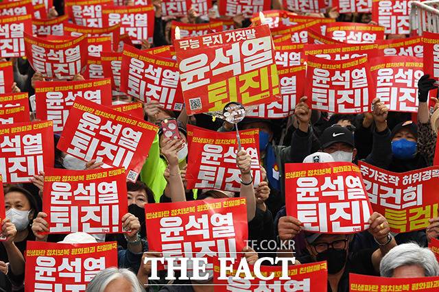 진보 성향 단체인 촛불전환행동은 이날 윤석열 정부의 퇴진과 김건희 여사의 특검을 요구했다.