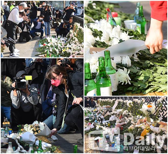 같은 날 오후, 서울시청 광장에 마련된 합동 분향소을 찾았다. 희생자들을 추모하는 시민들과 취재진들로 북적인다. 동료들과 함께 희생자들을 애도하는 마음으로 국화 한 송이를 헌화했다. ‘부디 좋은 곳으로 가길...’ 유가족에게 차마 전하지 못한 위로를 속으로 되내였다.