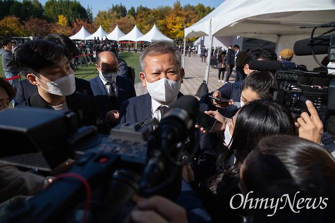 | ▲ 이상민 행정안전부 장관이 31일 오전 서울시청 앞에 마련된 '이태원사고 사망자 합동분향소'에서 조문을 마치고 기자들의 질문에 답변하고 있다. |