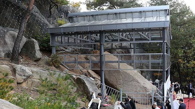 그러나 바위가 약 80t에 이를 정도로 육중하고 산비탈 중턱에 엎어진 상태여서 그동안 문화재당국은 처리에 골머리를 앓아왔습니다.