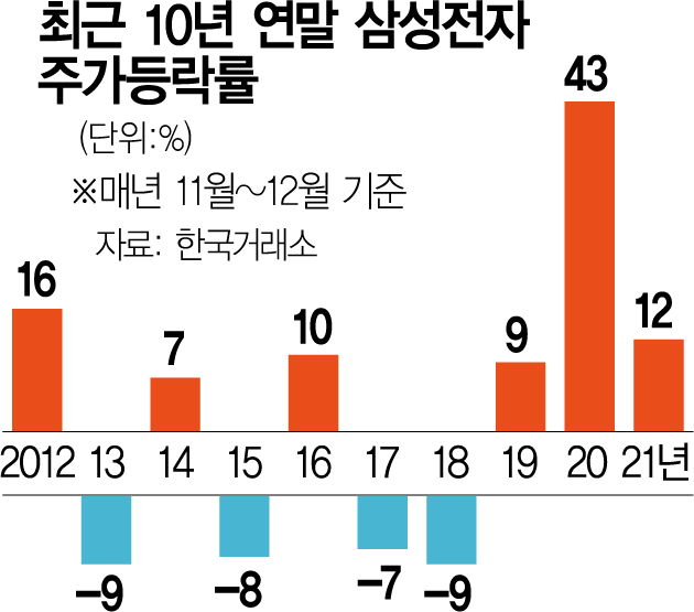 삼성전자(005930) 주가가 매년 말 강세를 보여 올해도 상승세를 이어갈 수 있을지 기대감이 커지고 있다.