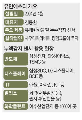 모든 종류의 액체를 감지할 수 있는 유민에쓰티의 누액감지 센서는 정유, 화학플랜트, 건설, 정보기술(IT), 발전소 등 액체를 사용하는 모든 장소에 적용 가능하다. 이미 기흥, 화성, 평택, 파주 등 수도권의 반도체 생산 현장에서는 유민에쓰티의 누액감지 센서가 반도체 공정에 사용되는 적은 양의 약액도 민감하게 잡아내면서 화학물질 방재 분야에서 알토란 같은 활약을 하고 있다.