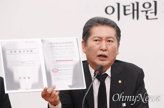 정청래 더불어민주당 최고위원이 2일 서울 여의도 국회에서 열린 최고위원회의에서, 이태원 압사 참사 직후 경찰청이 주요 시민단체 동향을 파악해 내부 문건을 만든 것으로 드러난 데 대해 "사실상 정치사찰"이라며 "군부독재정권에 있을 법한 관계기관 대책회의를 연상케 한다"라고 비판하고 있다.