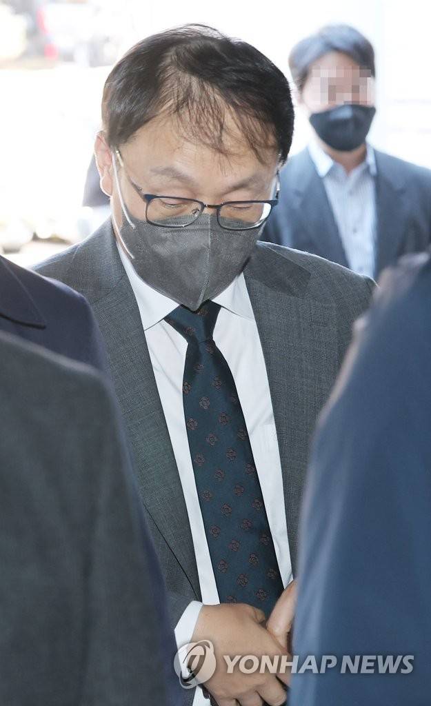 (서울=연합뉴스) 박동주 기자 = 국회의원들에게 쪼개기 후원을 한 혐의로 기소된 구현모 KT 대표이사가 2일 오후 서초구 서울중앙지법에서 열린 1심 공판에 출석하고 있다. 2022.11.2
