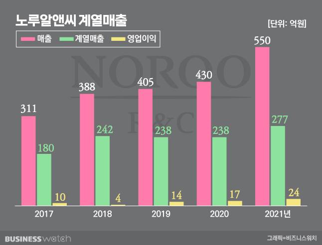 수치가 증거다. 2019~2020년 노루케미칼 재고매입금액이 165억원, 137억원이다. 계열매출이 각각 238억원이다. 전체 매출의 55~59%다. 사업구조가 말해주듯이 노루알앤씨의 본점 또한 경기 안양의 노루페인트 본사 및 안양공장에 위치하고 있다.