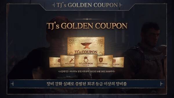TJ's 골든 쿠폰은 변신, 무기 복구, 방어구 복구, 장신구 복구, 마법인형, 스페셜 강화로 총 6종이다 출석체크 이벤트를 통해 일정에 따라 TJ 코인을 획득한 후 상점 메뉴에서 구매 가능하다. 그중에서 TJ's 스페셜 강화 주문서는 제작 메뉴의 이벤트 탭에서 원하는 강화 주문서로 제작한 후 강화할 수 있다. TJ's 스페셜 강화 주문서는 강화에 실패해도 아이템이 증발하지 않지만 각인 아이템에만 사용할 수 있는 것을 알아둘 필요가 있다.