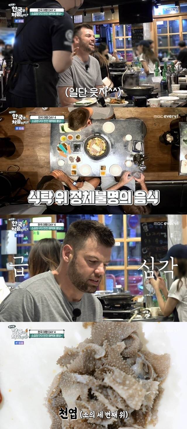 가장 먼저 용기를 낸 건 리처드였다. 천엽을 입에 넣은 그는 "아무 맛도 나지 않는다"며 고개를 갸웃거렸다. 심지어 옆에 놓인 생간은 젓가락질을 하는 것도 쉽지 않았다. 형제들은 심각한 표정으로 인생 첫 천엽, 생간 시식을 마쳤다.